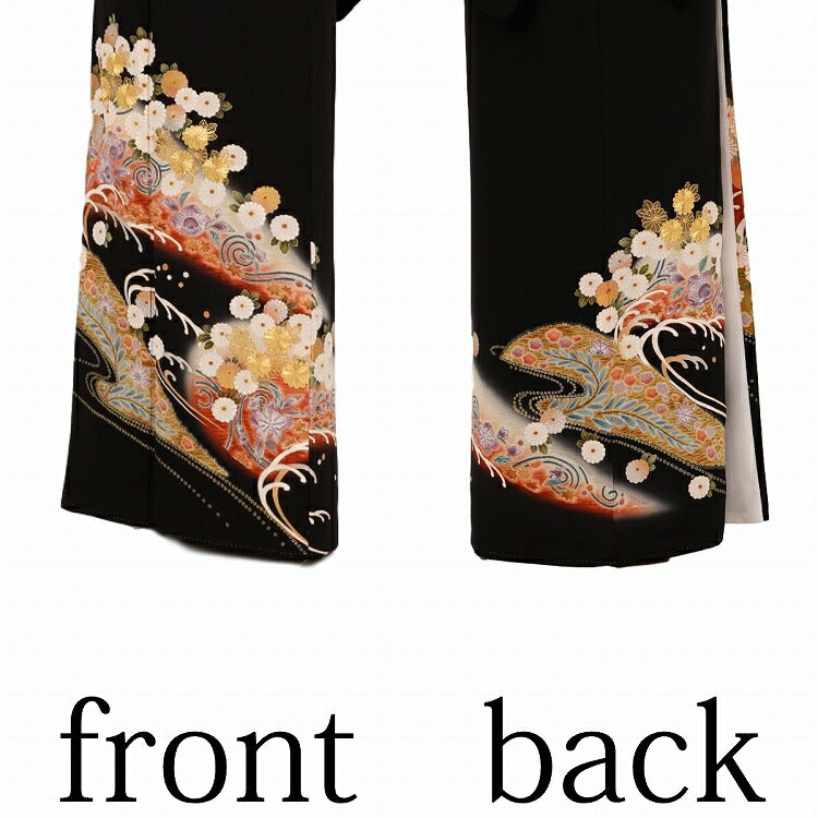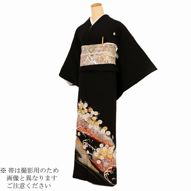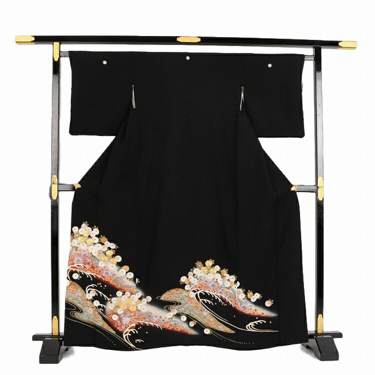 黒留袖 レンタル 小さいサイズ Sサイズ 波頭小花 正絹 留袖 レンタル 留袖レンタル 黒留袖レンタル 【レンタル】 黒留袖 袷 母親 20代 30代 40代 50代 60代