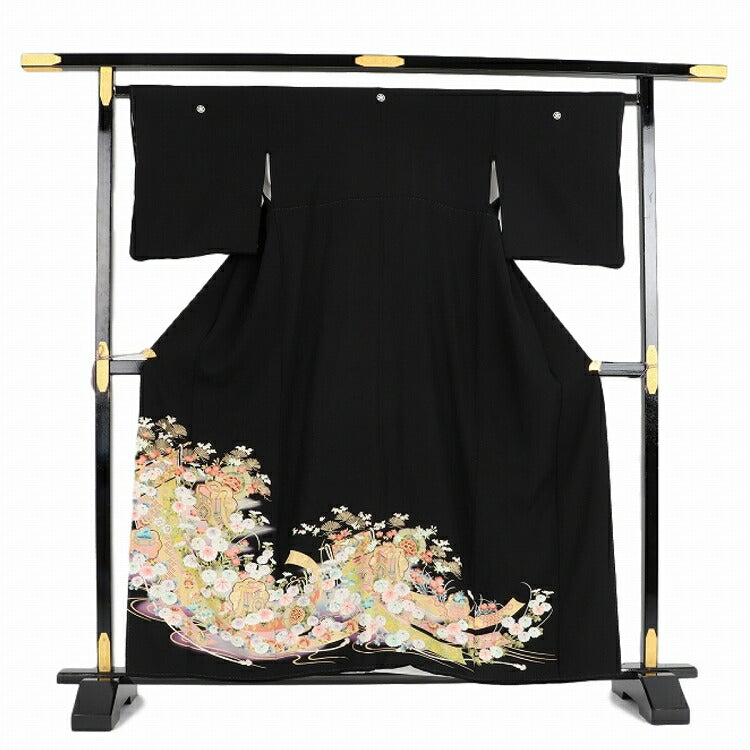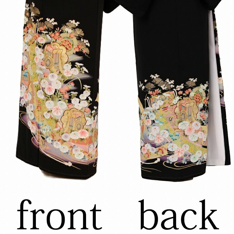 黒留袖 レンタル 小さいサイズ Sサイズ ヒワ藤几帳御所車 正絹 留袖 レンタル 留袖レンタル 黒留袖レンタル 【レンタル】 黒留袖 袷 母親 20代 30代 40代 50代 60代