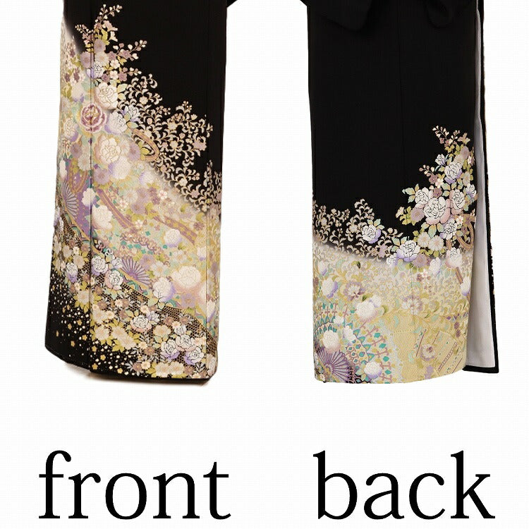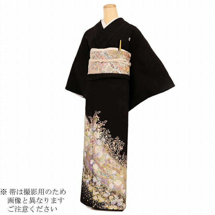 黒留袖 レンタル 小さいサイズ Sサイズ 紫ぼかしバラ花束 正絹 留袖 レンタル 留袖レンタル 黒留袖レンタル 【レンタル】 黒留袖 袷 母親 20代 30代 40代 50代 60代