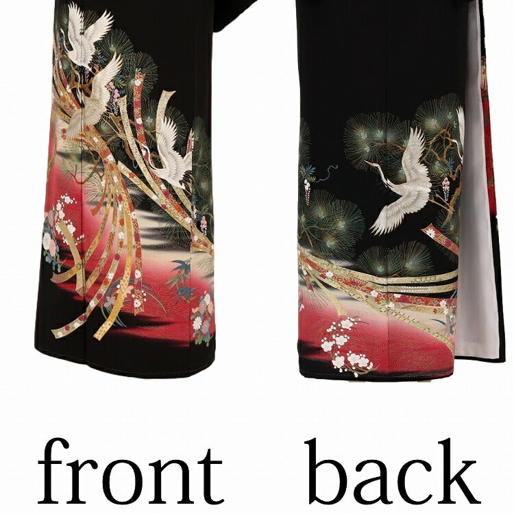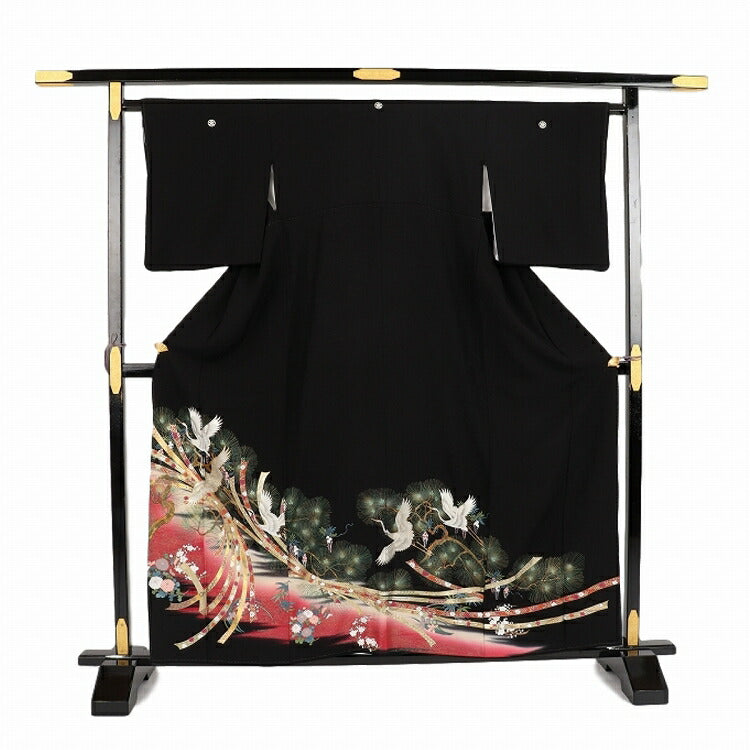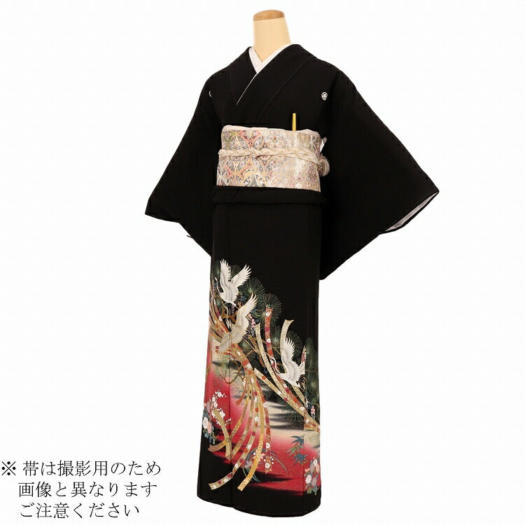 黒留袖 レンタル 小さいサイズ Sサイズ ワインのしに松鶴 正絹 留袖 レンタル 留袖レンタル 黒留袖レンタル 【レンタル】 黒留袖 袷 母親 20代 30代 40代 50代 60代