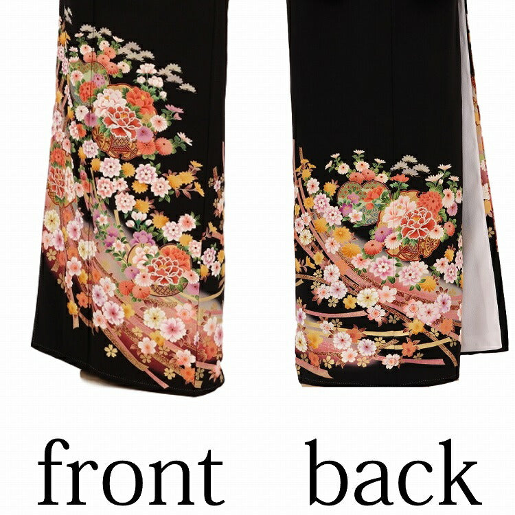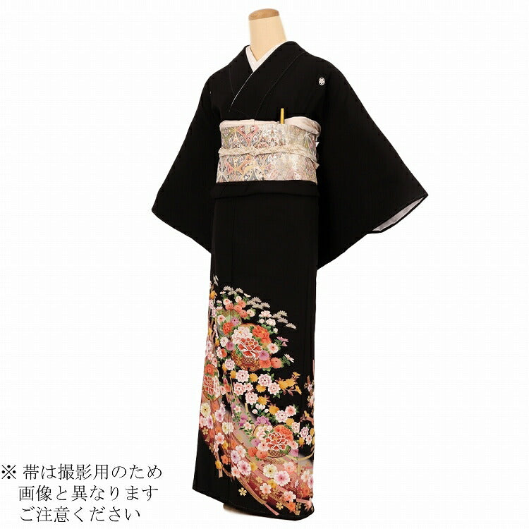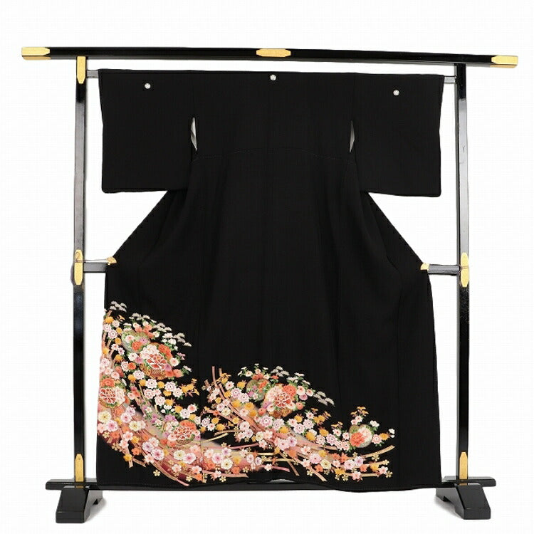 黒留袖 レンタル 小さいサイズ Sサイズ 朱箔のしに花雪輪 正絹 留袖 レンタル 留袖レンタル 黒留袖レンタル 【レンタル】 黒留袖 袷 母親 20代 30代 40代 50代 60代