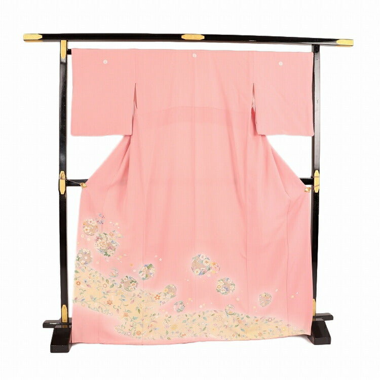 レンタル 色留袖 レンタル おしゃれ Mサイズ 朱鷺唐花四愛 【レンタル】 着物レンタル 色留袖レンタル 五つ紋 20代 30代 40代 50代 正絹  結婚式 フルセット モダン 叙勲 叙勲式 式典 金婚式