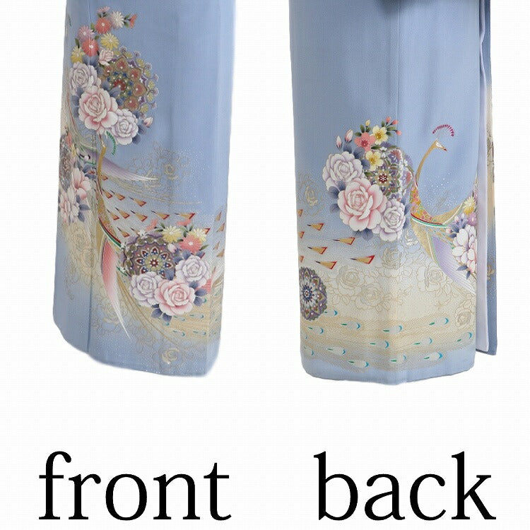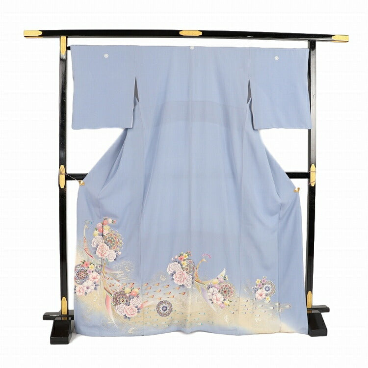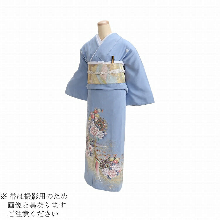 レンタル 色留袖 レンタル おしゃれ Mサイズ 水色バラ孔雀 【レンタル】 着物レンタル 色留袖レンタル 五つ紋 20代 30代 40代 50代 正絹  結婚式 フルセット モダン 叙勲 叙勲式 式典 金婚式
