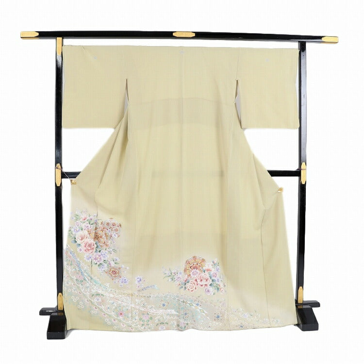レンタル 色留袖 レンタル おしゃれ Mサイズ 萌黄箔更紗洋花 【レンタル】 五つ紋 20代 30代 40代 50代 正絹 結婚式 フルセット 叙勲 叙勲式 式典 金婚式 祖母 親族 姉妹 叔母 伯母 比翼仕立て 帯