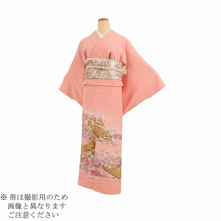 レンタル 色留袖 レンタル おしゃれ Mサイズ ピンク桜文箱鶴 【レンタル】 五つ紋 20代 30代 40代 50代 正絹 結婚式 フルセット 叙勲 叙勲式 式典 金婚式 祖母 親族 姉妹 叔母 伯母 比翼仕立て 帯