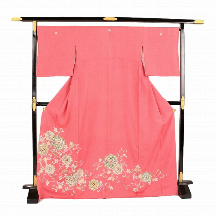 レンタル 色留袖 レンタル おしゃれ Mサイズ サーモン華紋唐草 【レンタル】 五つ紋 20代 30代 40代 50代 正絹 結婚式 フルセット 叙勲 叙勲式 式典 金婚式 祖母 親族 姉妹 叔母 伯母 比翼仕立て 帯