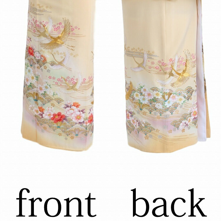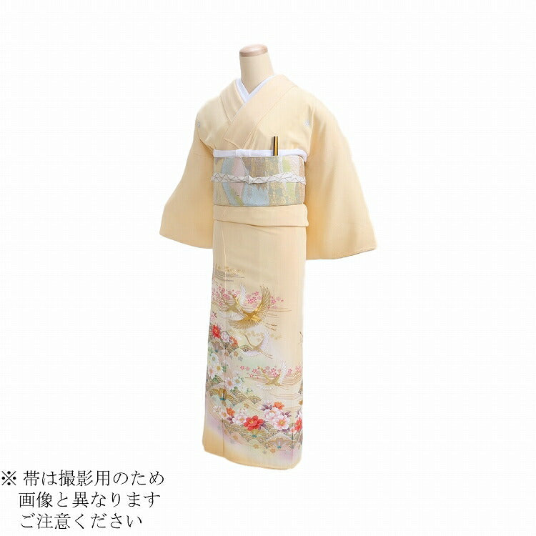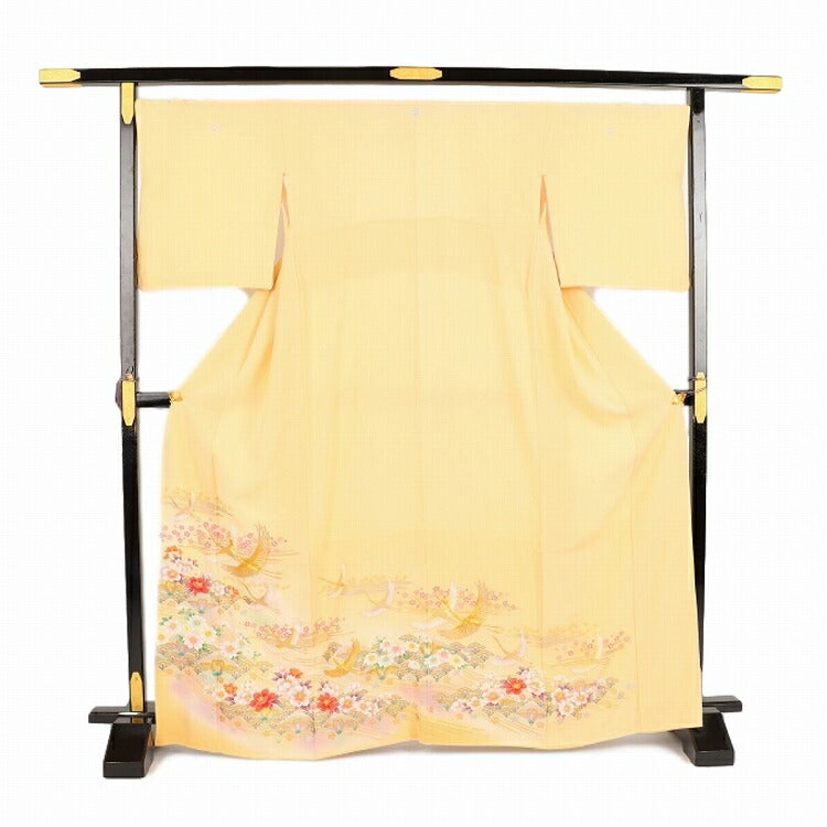 レンタル 色留袖 レンタル おしゃれ Mサイズ 黄色流水かすみ鶴 【レンタル】 五つ紋 20代 30代 40代 50代 正絹 結婚式 フルセット 叙勲 叙勲式 式典 金婚式 祖母 親族 姉妹 叔母 伯母 比翼仕立て 帯