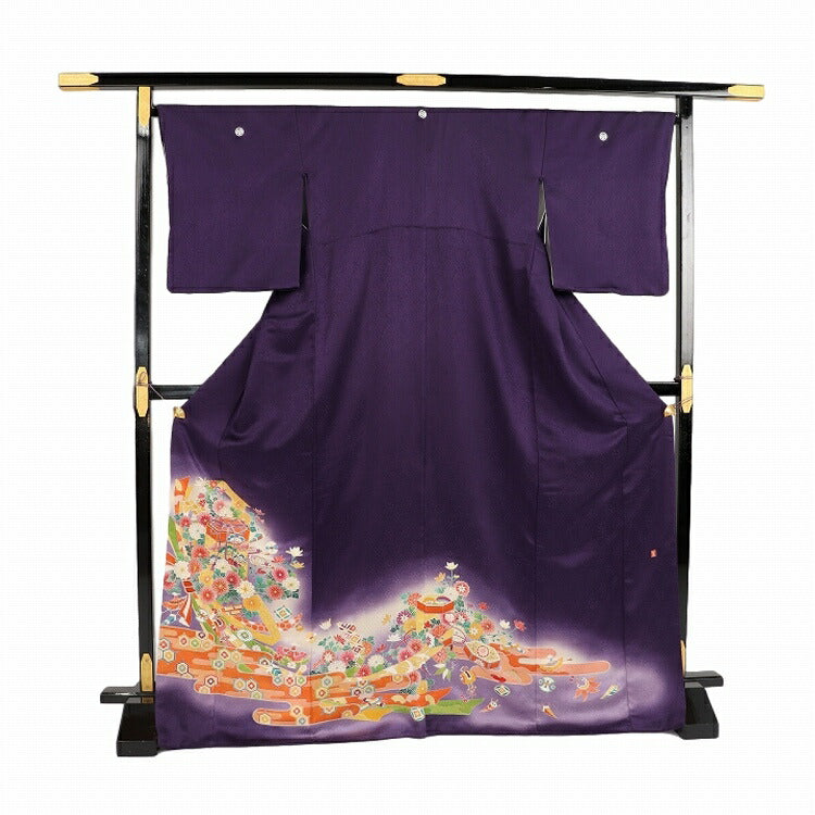 レンタル 色留袖 レンタル おしゃれ Mサイズ 紫のし解桶 【レンタル】 五つ紋 20代 30代 40代 50代 正絹 結婚式 フルセット 叙勲 叙勲式 式典 金婚式 祖母 親族 姉妹 叔母 伯母 比翼仕立て 帯