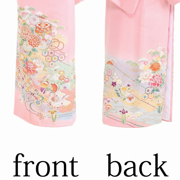 レンタル 色留袖 レンタル おしゃれ Mサイズ 時亀甲七宝おしどり貝箱 【レンタル】 五つ紋 20代 30代 40代 50代 正絹 結婚式 フルセット 叙勲 叙勲式 式典 金婚式 祖母 親族 姉妹 叔母 伯母 比翼仕立て 帯