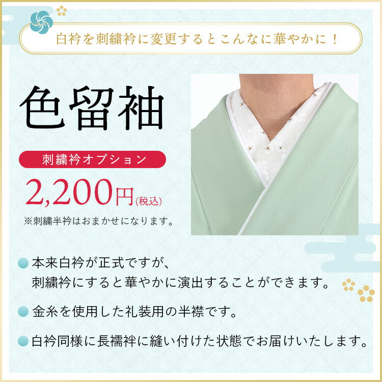 セット内容 留袖・袋帯・長襦袢(半衿付)・帯揚・帯締・末広(金銀)・草履・バック・衿しん・足袋・肌着(ワンピース)・腰ひも4本・和装ベルト1本・帯板1本・帯枕・伊達締め2本