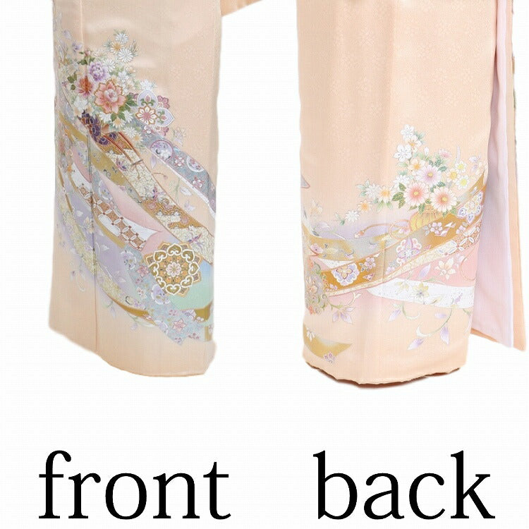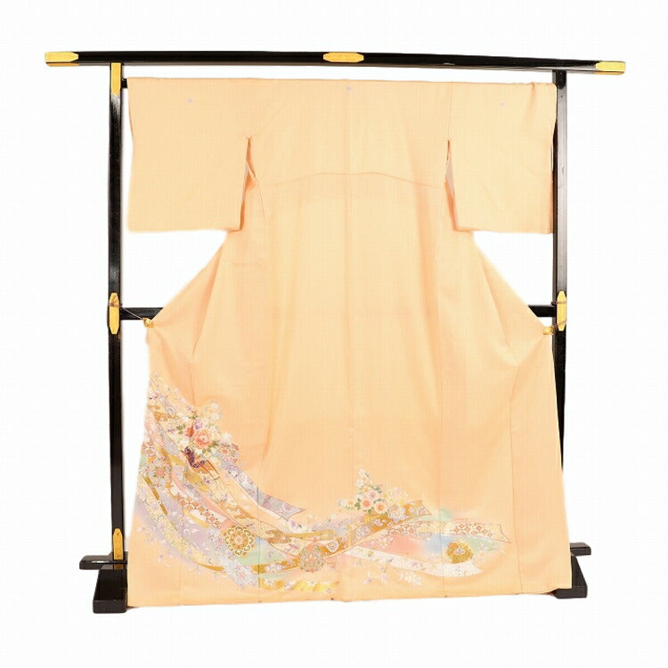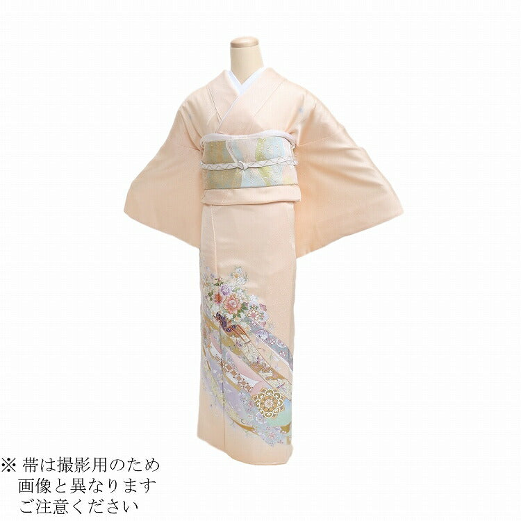 レンタル 色留袖 レンタル おしゃれ Mサイズ 肌色のし花車 【レンタル】 五つ紋 20代 30代 40代 50代 正絹 結婚式 フルセット 叙勲 叙勲式 式典 金婚式 祖母 親族 姉妹 叔母 伯母 比翼仕立て 帯
