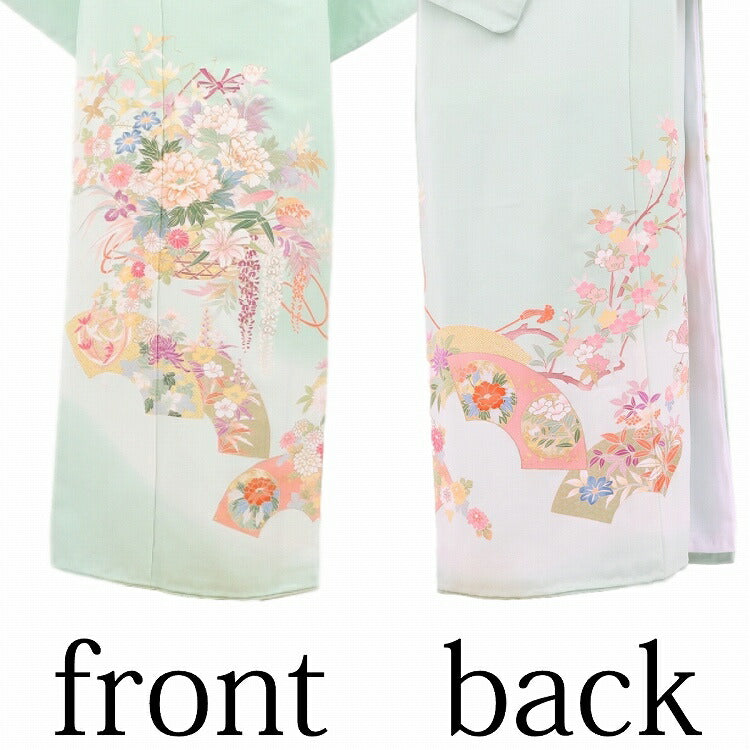 レンタル 色留袖 レンタル おしゃれ Mサイズ ヒワ花篭扇面 【レンタル】 五つ紋 20代 30代 40代 50代 正絹 結婚式 フルセット 叙勲 叙勲式 式典 金婚式 祖母 親族 姉妹 叔母 伯母 比翼仕立て 帯