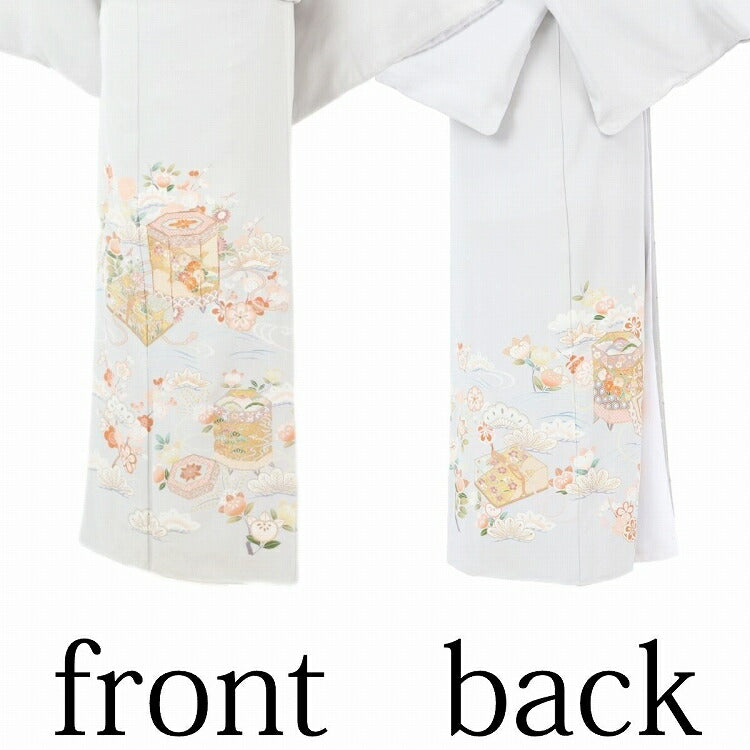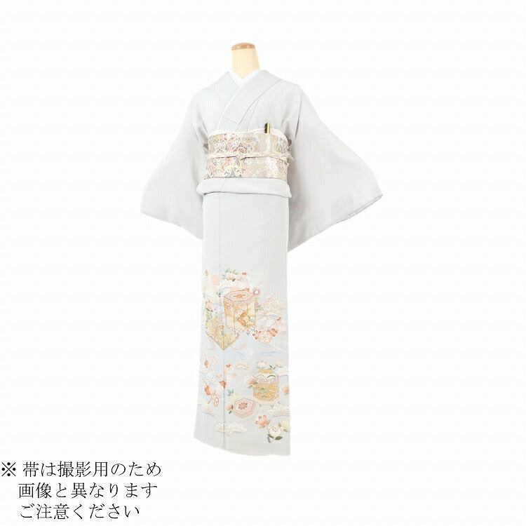 レンタル 色留袖 レンタル おしゃれ Mサイズ 薄グレー貝桶文箱 【レンタル】 五つ紋 20代 30代 40代 50代 正絹 結婚式 フルセット 叙勲 叙勲式 式典 金婚式 祖母 親族 姉妹 叔母 伯母 比翼仕立て 帯