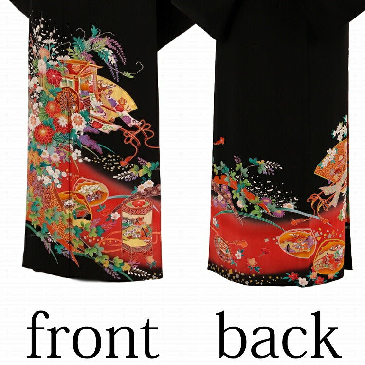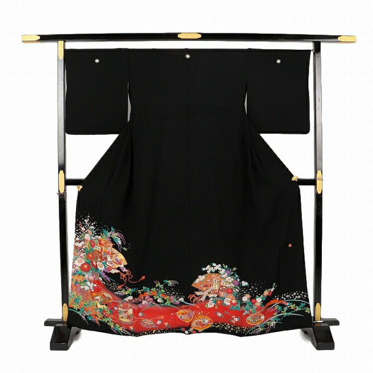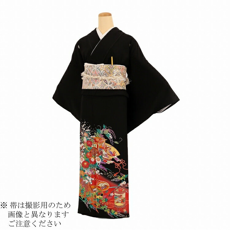結婚式 黒留袖 レンタル 夏用 単衣 おすすめ Mサイズ 赤花御所車貝桶 正絹 留袖 レンタル 留袖レンタル 黒留袖レンタル 【レンタル】 結婚式 単衣 母親 20代 30代 40代 50代 60代