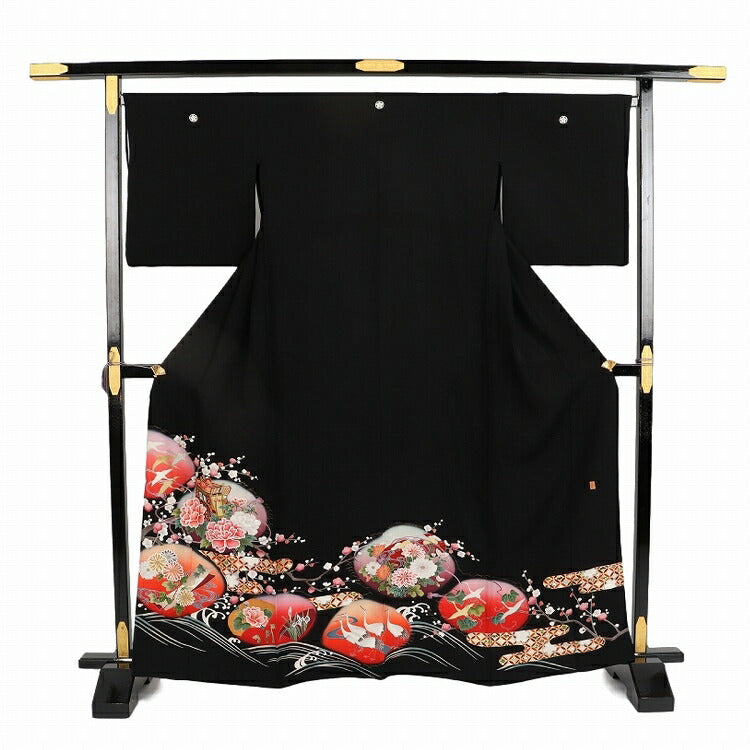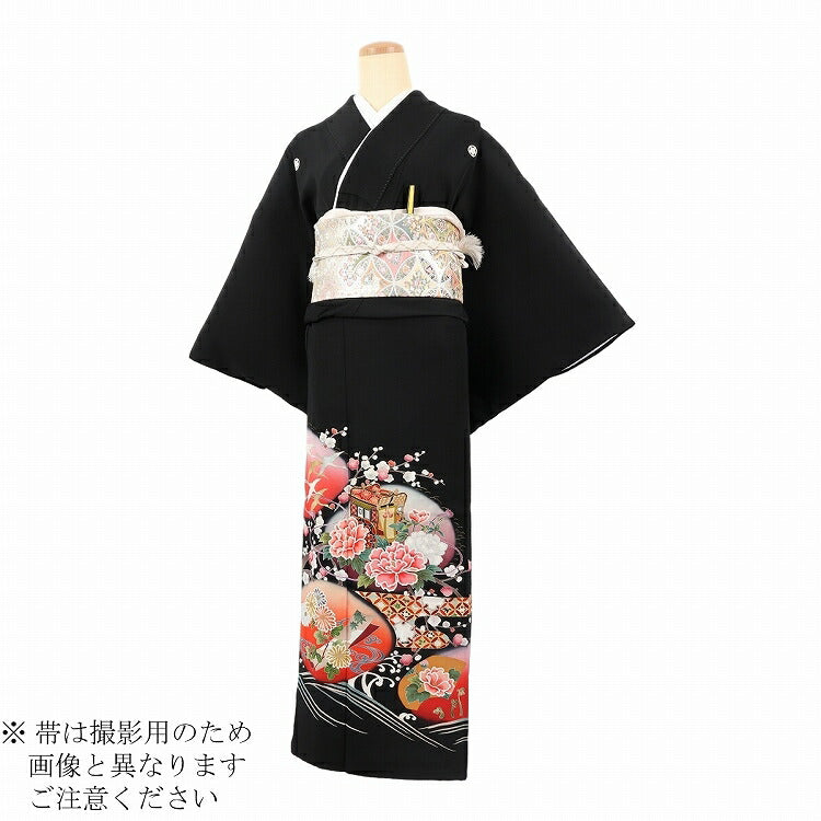 結婚式 黒留袖 レンタル 夏用 単衣 おすすめ Mサイズ 赤貝取四季花車 正絹 留袖 レンタル 留袖レンタル 黒留袖レンタル 【レンタル】 結婚式 単衣 母親 20代 30代 40代 50代 60代