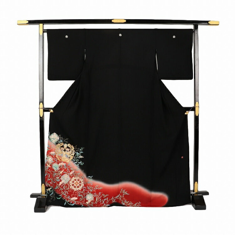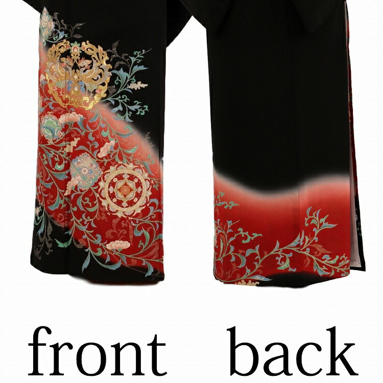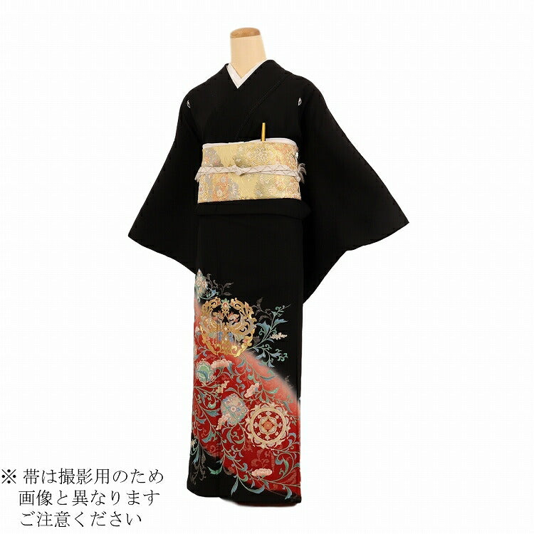 結婚式 黒留袖 レンタル 夏用 単衣 おすすめ Mサイズ 朱レンガ唐草鳳凰 正絹 留袖 レンタル 留袖レンタル 黒留袖レンタル 【レンタル】 結婚式 単衣 母親 20代 30代 40代 50代 60代