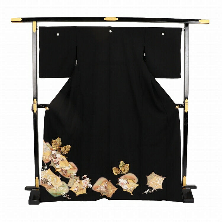 結婚式 黒留袖 レンタル 夏用 単衣 おすすめ Mサイズ 金箔松葉花凧 正絹 留袖 レンタル 留袖レンタル 黒留袖レンタル 【レンタル】 結婚式 単衣 母親 20代 30代 40代 50代 60代