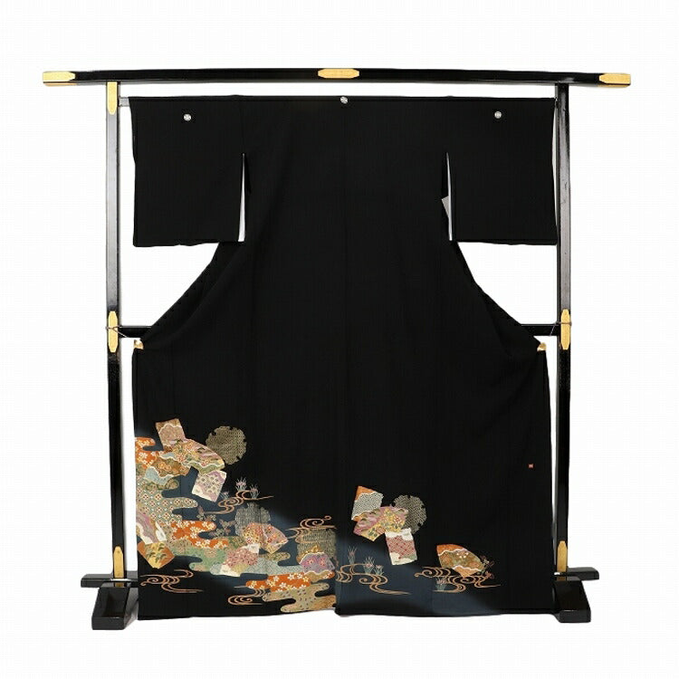 結婚式 黒留袖 レンタル 夏用 単衣 おすすめ Mサイズ 小紋霞扇面 正絹 留袖 レンタル 留袖レンタル 黒留袖レンタル 【レンタル】 結婚式 単衣 母親 20代 30代 40代 50代 60代