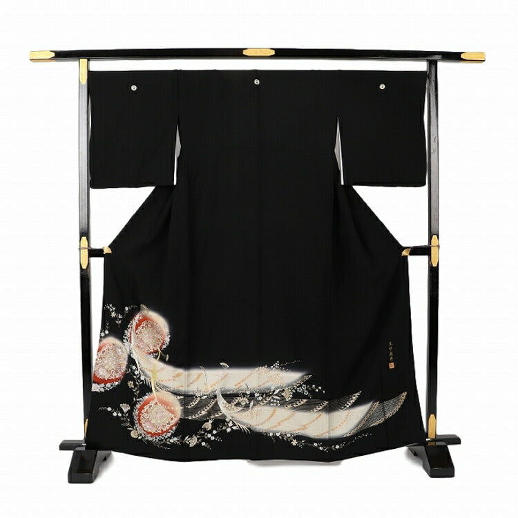 結婚式 黒留袖 レンタル 夏用 単衣 おすすめ Mサイズ レンガ箔更紗孔雀 正絹 留袖 レンタル 留袖レンタル 黒留袖レンタル 【レンタル】 結婚式 単衣 母親 20代 30代 40代 50代 60代