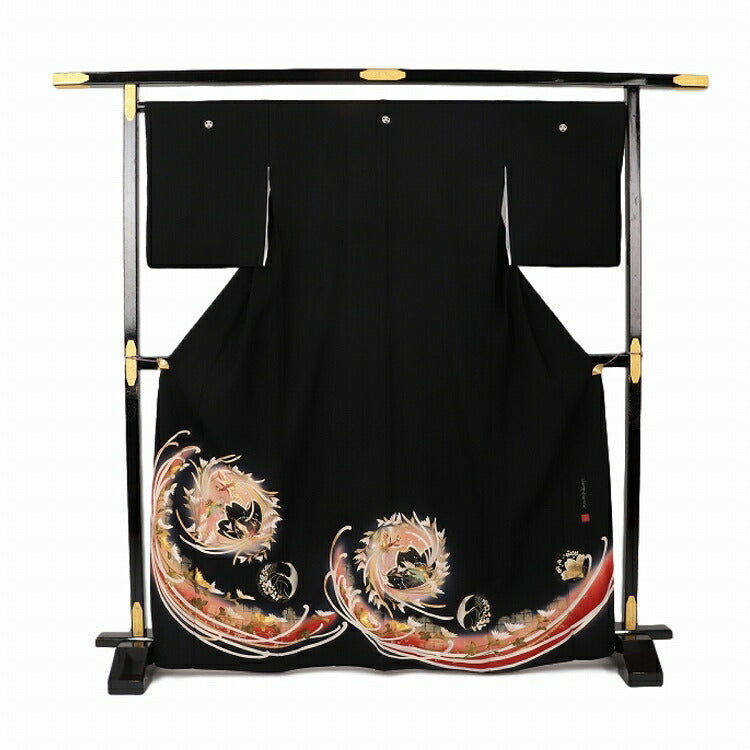 結婚式 黒留袖 レンタル 夏用 単衣 おすすめ Mサイズ 金縫乱菊鳳凰 正絹 留袖 レンタル 留袖レンタル 黒留袖レンタル 【レンタル】 結婚式 単衣 母親 20代 30代 40代 50代 60代