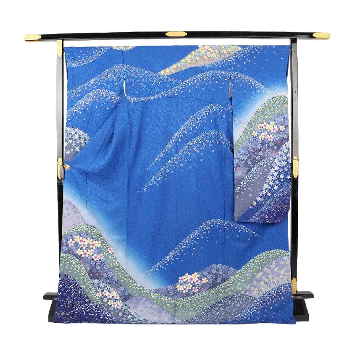 振袖 レンタル 青 紺色 【Mサイズ 紺碧ラメモダン桜】 振袖 レンタル 成人式 シンプル 1か月 振袖レンタル フルセット 結婚式 【レンタル】 大正ロマン 振袖 草履 バッグ 帯