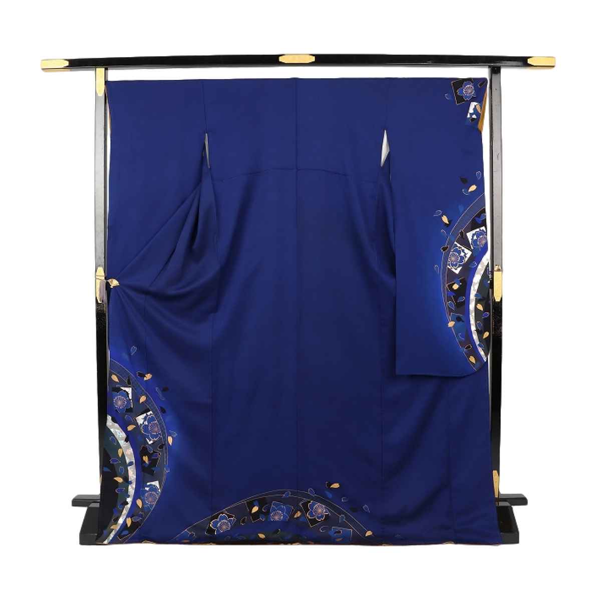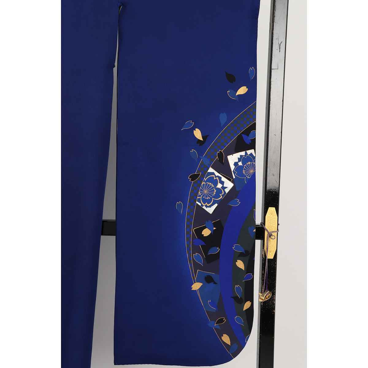 振袖 レンタル 青 紺色 【Mサイズ 濃紺桜カルタ】 振袖 レンタル 成人式 シンプル 1か月 振袖レンタル フルセット 結婚式  【レンタル】 大正ロマン 振袖 草履 バッグ 帯