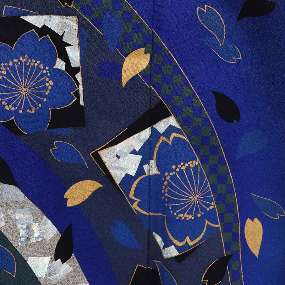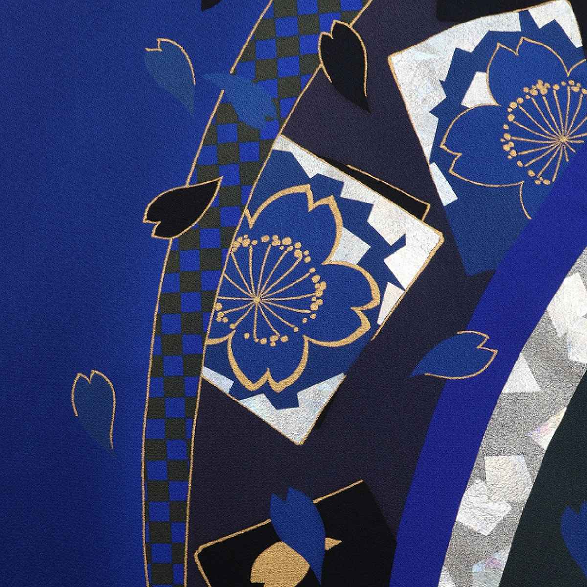 振袖 レンタル 青 紺色 【Mサイズ 濃紺桜カルタ】 振袖 レンタル 成人式 シンプル 1か月 振袖レンタル フルセット 結婚式 【レンタル】 大正ロマン 振袖 草履 バッグ 帯