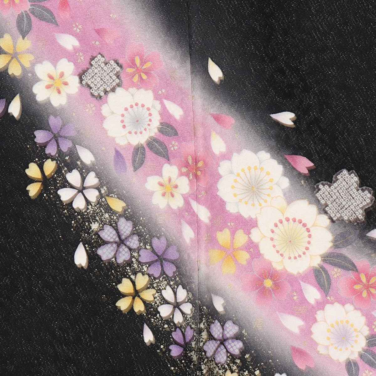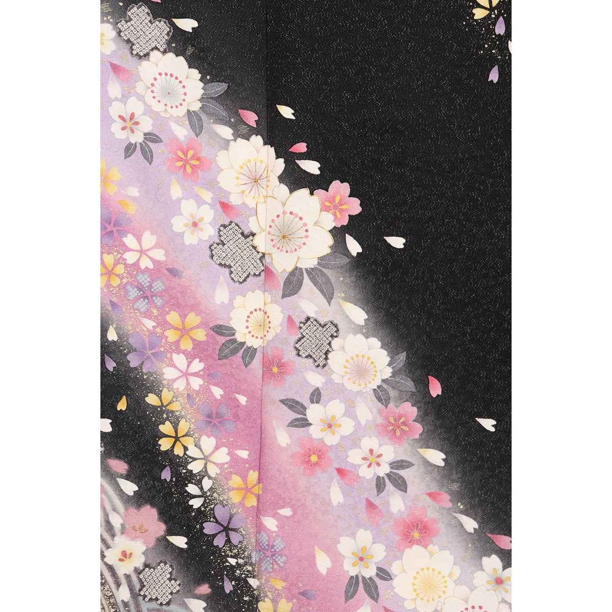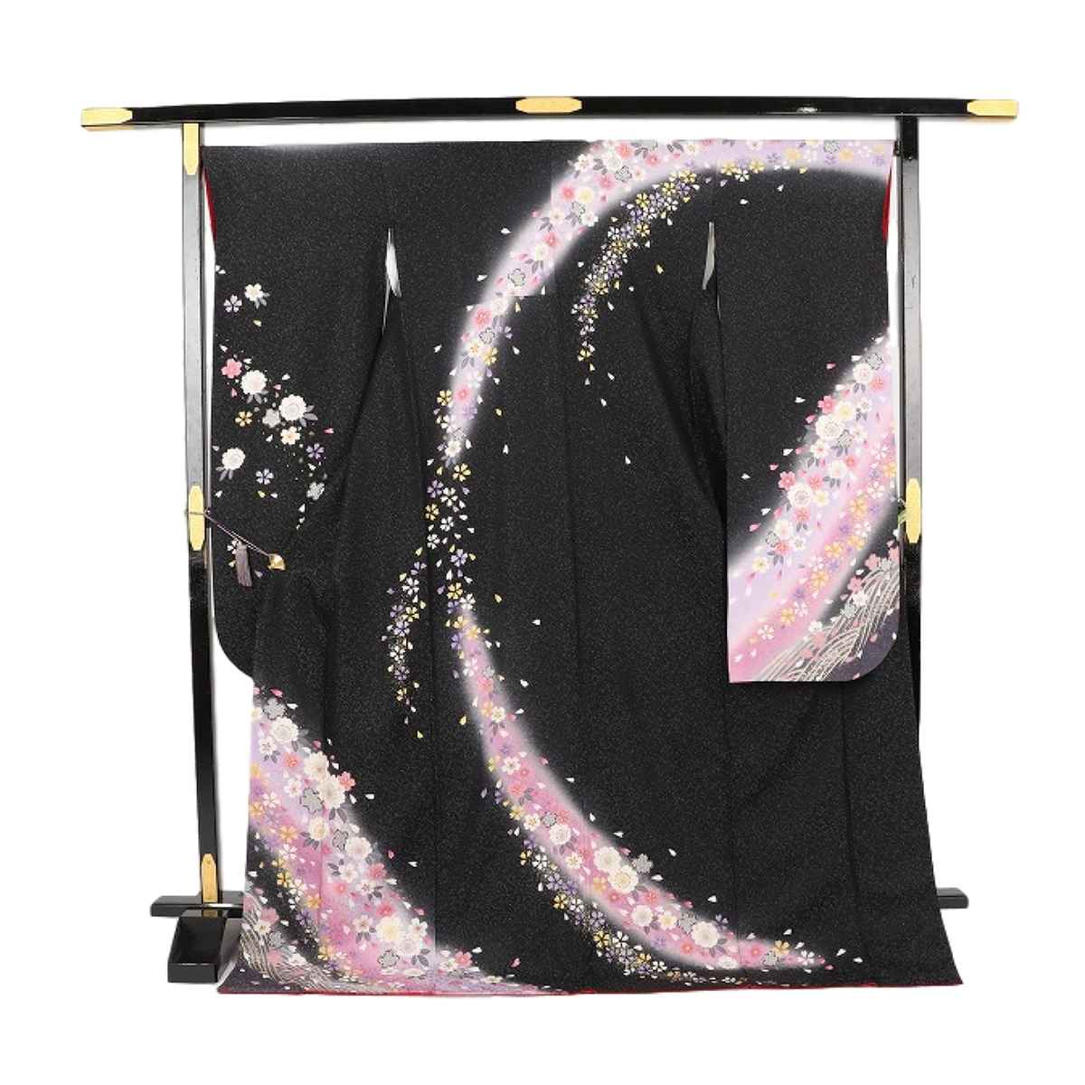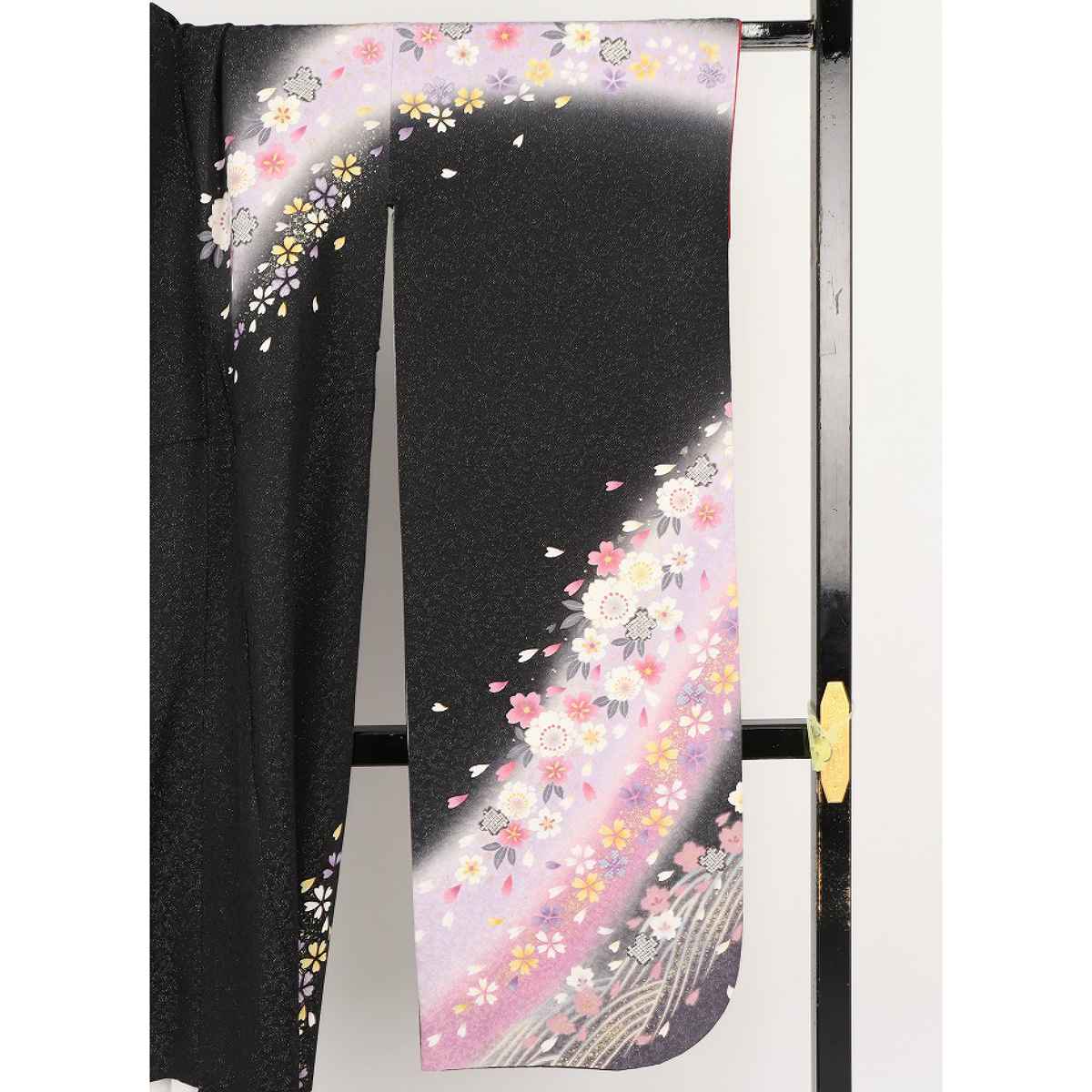 振袖 レンタル 黒 【Mサイズ 黒ラメ葉桜】 振袖 レンタル 成人式 シンプル 1か月 振袖レンタル フルセット 結婚式  【レンタル】 大正ロマン 振袖