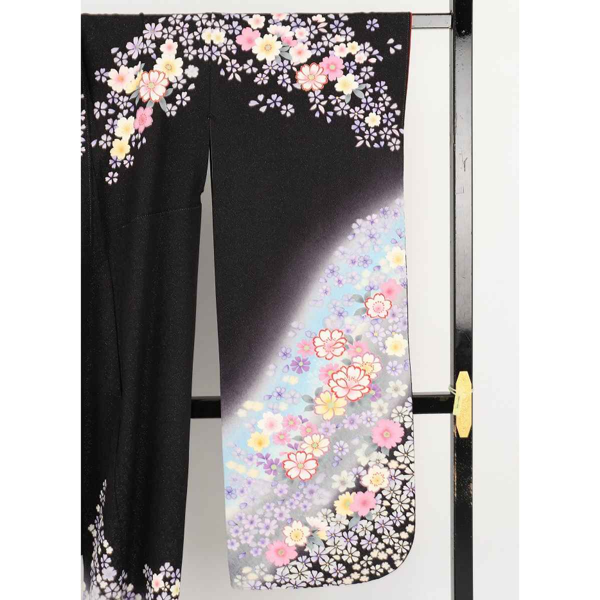 振袖 レンタル 黒 【Mサイズ 黒水ラメ月下花】 振袖 レンタル 成人式 シンプル 1か月 振袖レンタル フルセット 結婚式 【レンタル】 大正ロマン 振袖