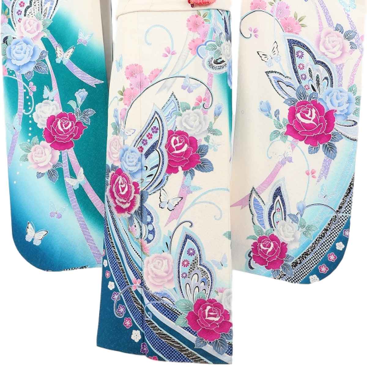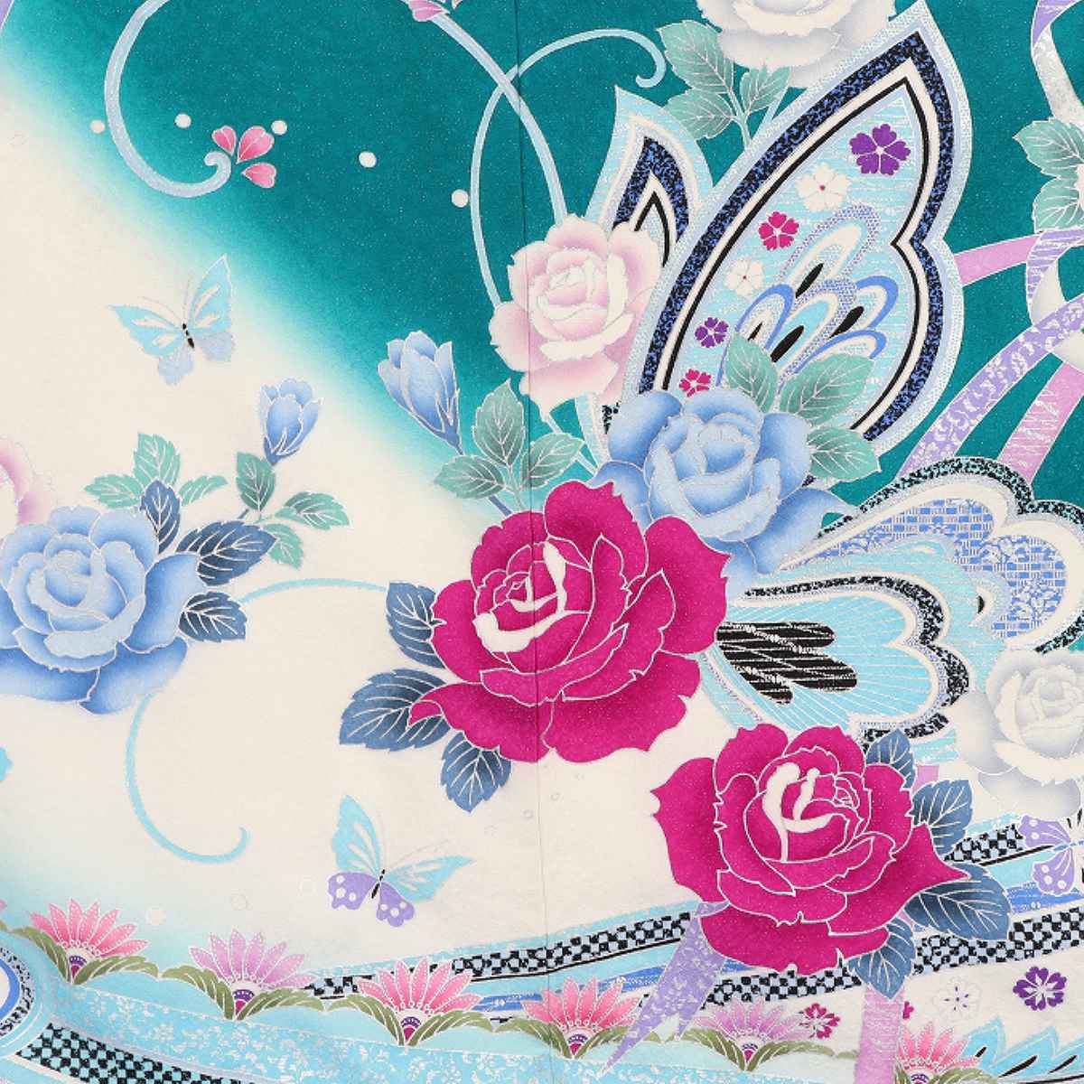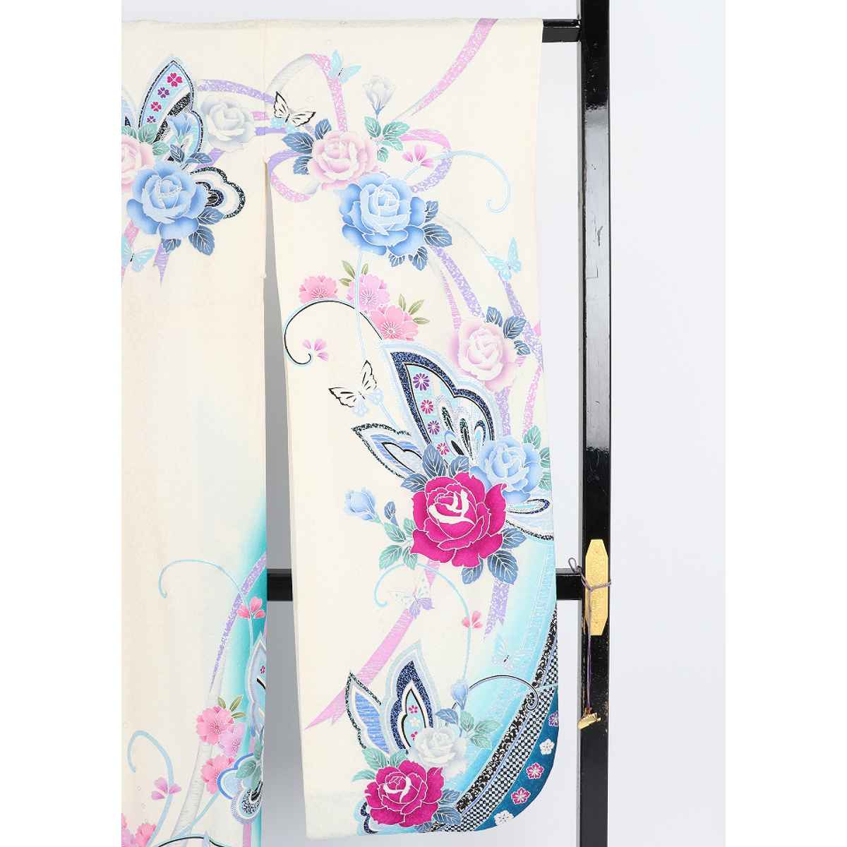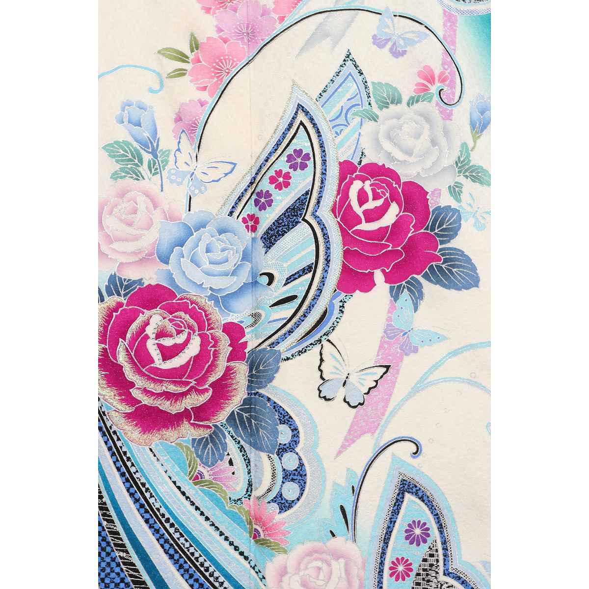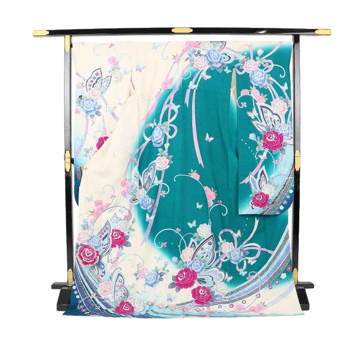 振袖 レンタル 白 【Mサイズ 白青緑ラメバラ蝶】 振袖 レンタル 成人式 シンプル 1か月 振袖レンタル フルセット 結婚式  【レンタル】 大正ロマン 振袖 草履 バッグ 帯