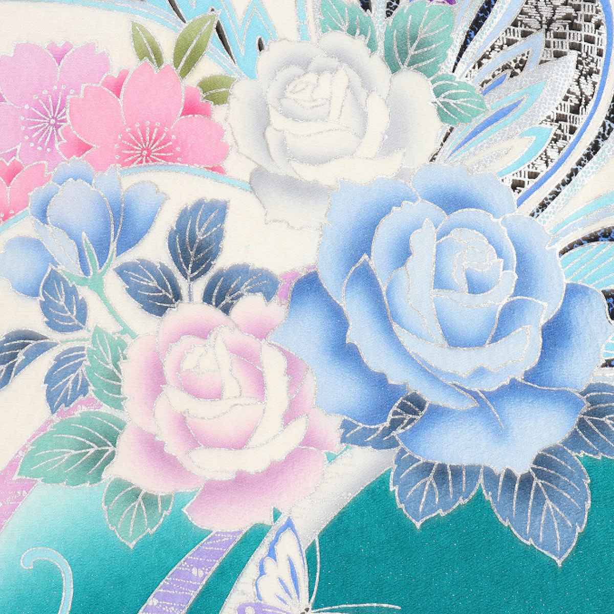 振袖 レンタル 白 【Mサイズ 白青緑ラメバラ蝶】 振袖 レンタル 成人式 シンプル 1か月 振袖レンタル フルセット 結婚式 【レンタル】 大正ロマン 振袖 草履 バッグ 帯