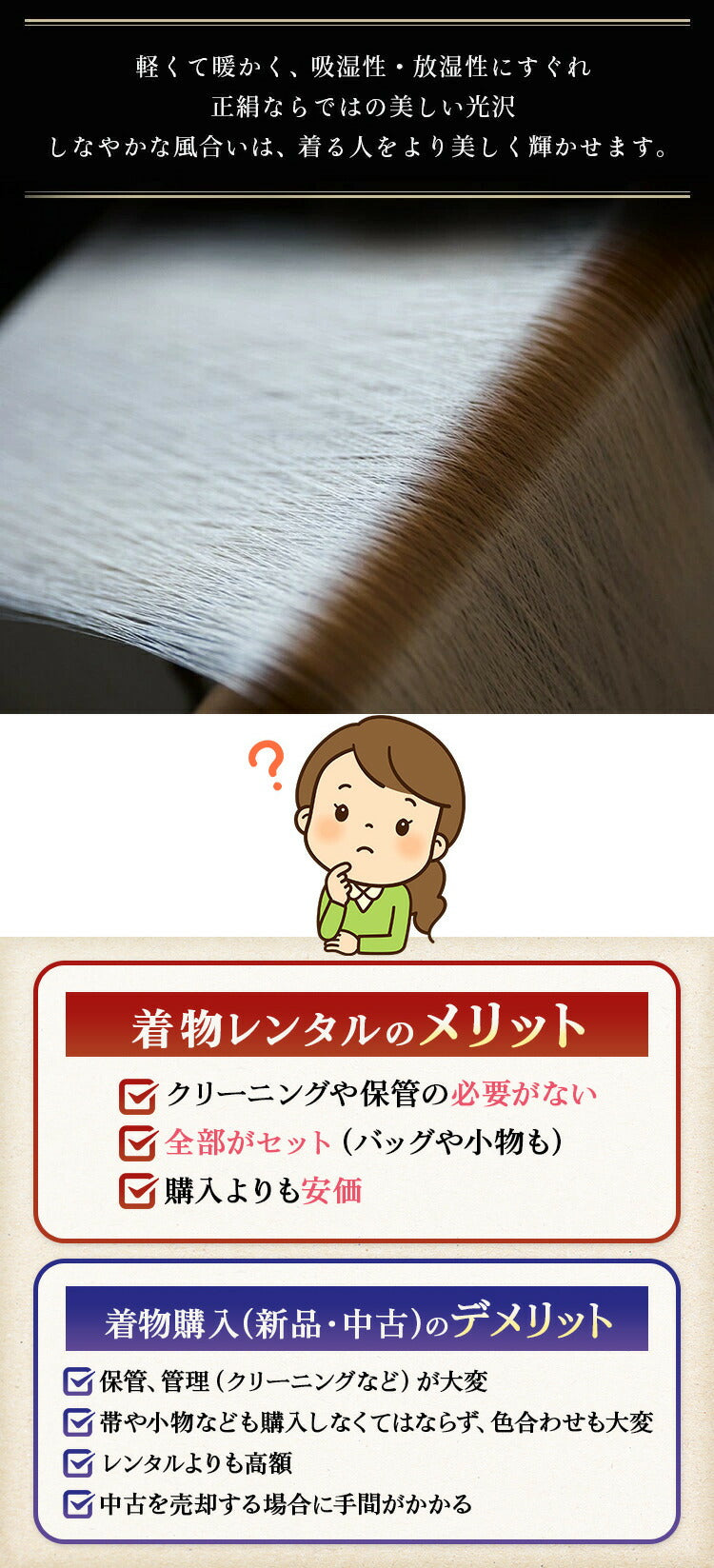 | コーディネートについて | 着物以外の帯や小物などは、お選びいただいた着物に合わせて当店スタッフがコーディネートさせていただきます。 |