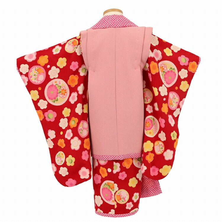 | セット内容 | 着物・被布コート・長襦袢・草履・足袋・巾着(バック)・髪飾り・腰ひも2本 ※新品足袋プレゼント! ※腰ひもは着物にも縫いつけてあります。 ※箱タイプでの発送になります。 |