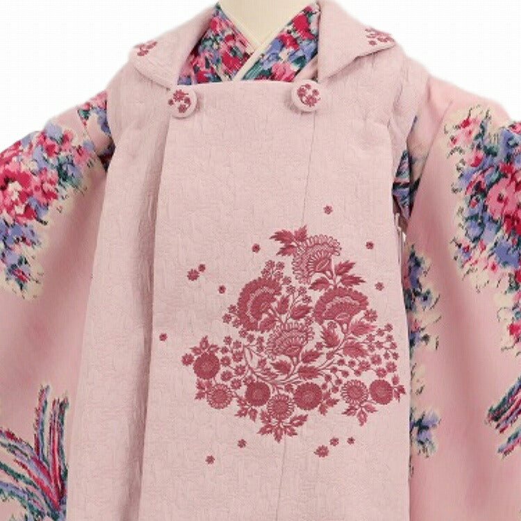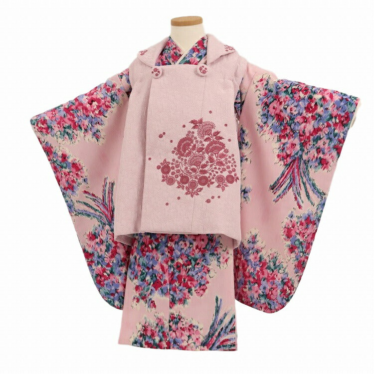 | セット内容 | 着物・被布コート・長襦袢・草履・足袋・巾着(バック)・髪飾り・腰ひも2本 ※新品足袋プレゼント! ※腰ひもは着物にも縫いつけてあります。 ※箱タイプでの発送になります。 |