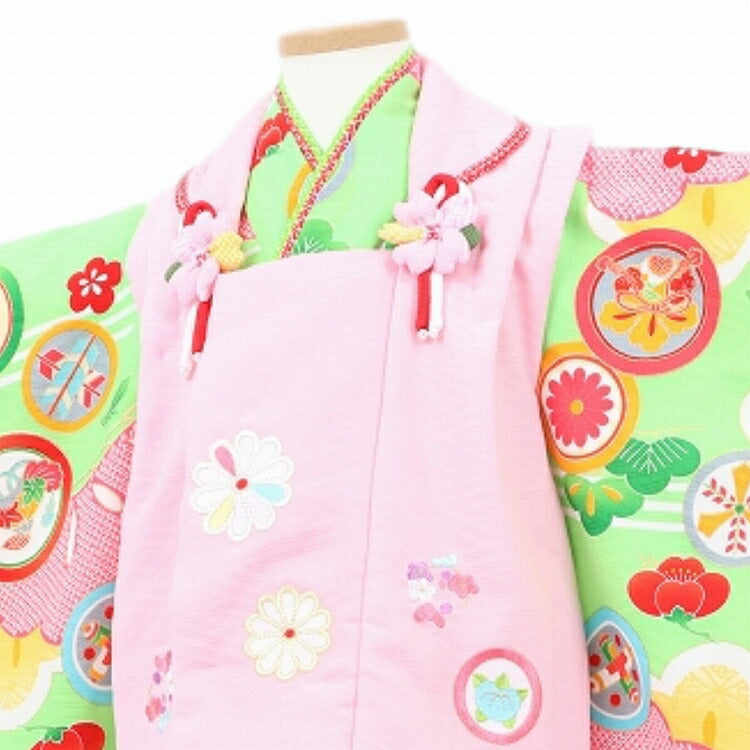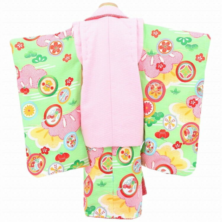 | セット内容 | 着物・被布コート・長襦袢・草履・足袋・巾着(バック)・髪飾り・腰ひも2本 ※新品足袋プレゼント! ※腰ひもは着物にも縫いつけてあります。 ※箱タイプでの発送になります。 |