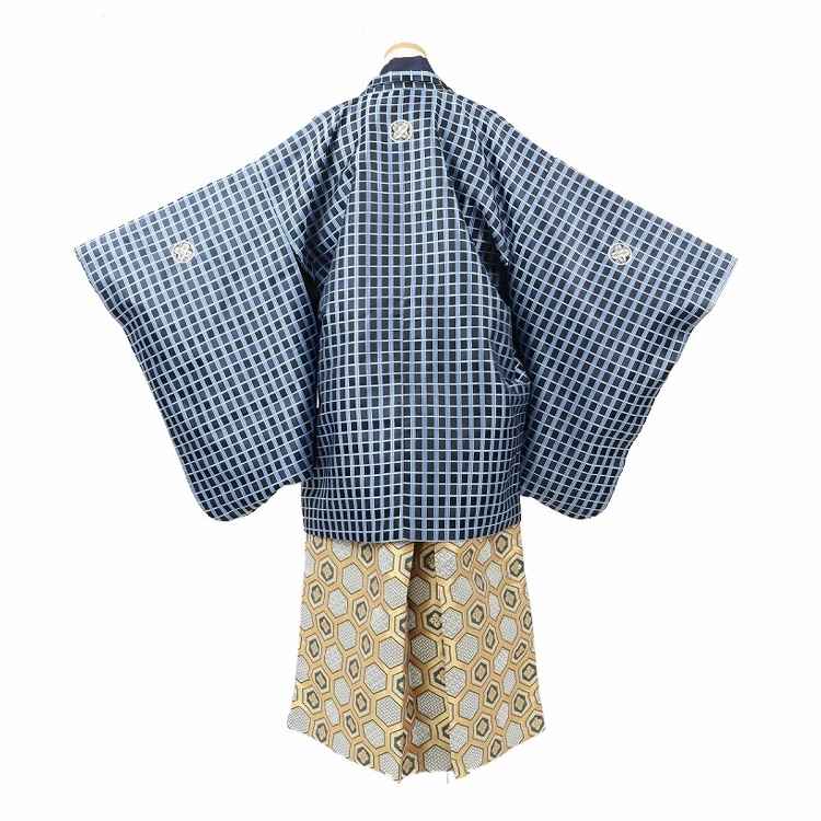 袴 レンタル 小学生 卒業式 袴 小学生 男の子 卒業式 袴セット 小学校 卒業式 袴 レンタル 男 【レンタル】 ブルー格子小紋 袴セット 卒業式 小学生男の子 袴 フルセット
