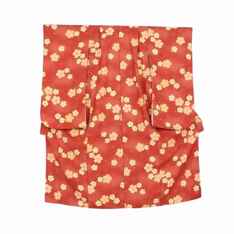 卒園式 袴 女の子 レンタル 【袴セット 錆朱麻の葉桜】 七五三 着物 7歳 フルセット レンタル 【レンタル】 7歳 七五三 着物 レトロ アンティーク モダン 753 肩上げ 無料