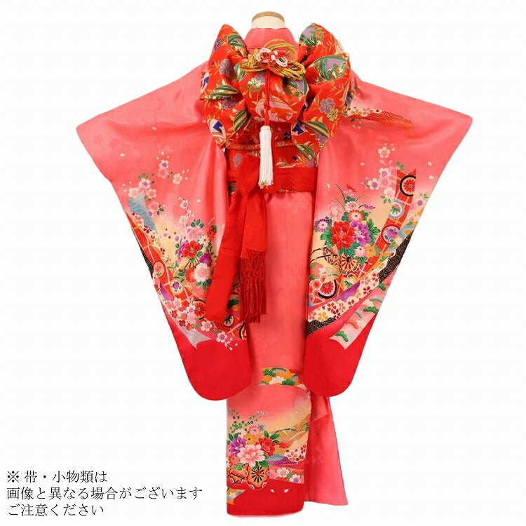 七五三 着物 レンタル 7歳 女の子 【正絹 時赤のし花車】 7歳 七五三 着物 レトロ 【レンタル】 アンティーク 七五三 着物 7歳 フルセット レンタル 七五三 7歳 帯 作り帯 袋帯 に変更可能 七五三 着物 7歳 女の子 小さめ