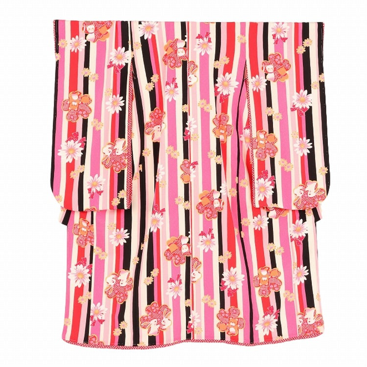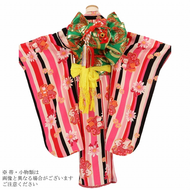七五三 着物 レンタル 7歳 女の子 【赤時黒縞ラブリー】 7歳 七五三 着物 レトロ 【レンタル】 アンティーク 七五三 着物 7歳 フルセット レンタル 七五三 7歳 帯 作り帯 袋帯 に変更可能 七五三 着物 7歳 女の子 小さめ