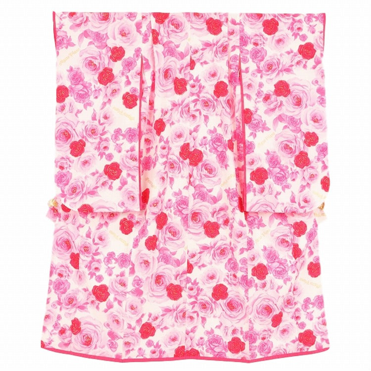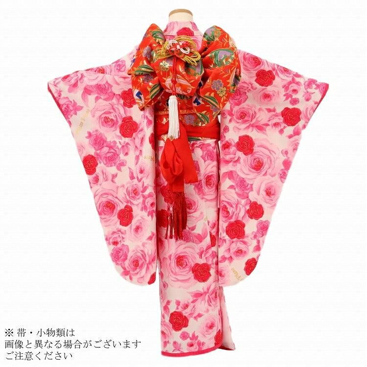七五三 着物 レンタル 7歳 女の子 【白ピンクバラ香】 7歳 七五三 着物 レトロ 【レンタル】 アンティーク 七五三 着物 7歳 フルセット レンタル 七五三 7歳 帯 作り帯 袋帯 に変更可能 七五三 着物 7歳 女の子 小さめ