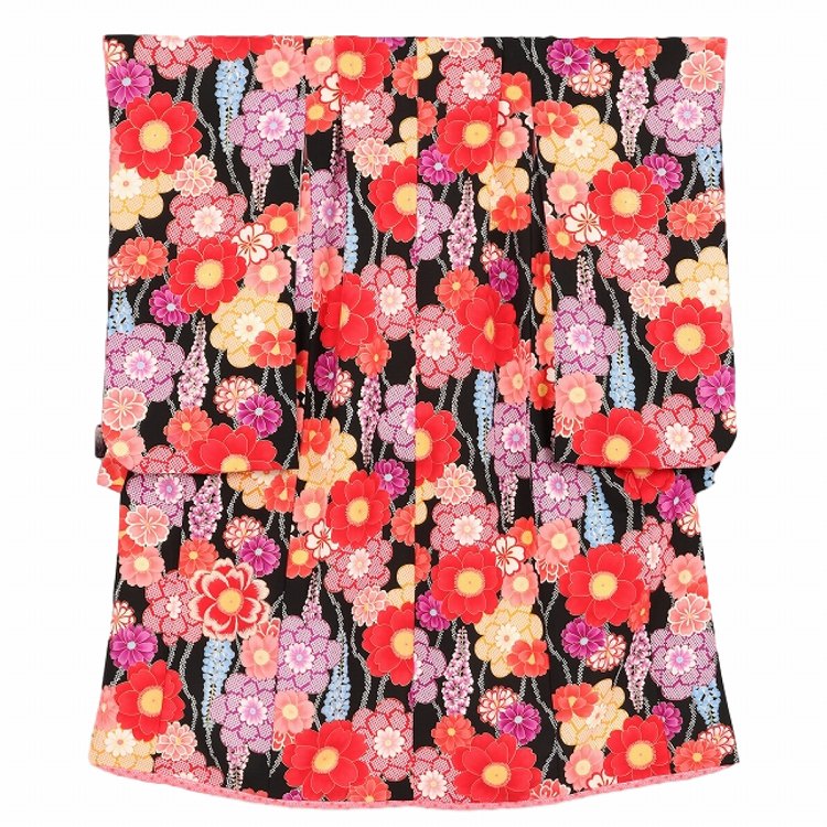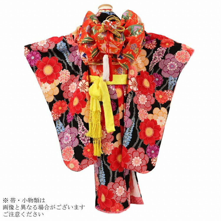 七五三 着物 レンタル 7歳 女の子 【黒疋田桜藤】 7歳 七五三 着物 レトロ 【レンタル】 アンティーク 七五三 着物 7歳 フルセット レンタル 七五三 7歳 帯 作り帯 袋帯 に変更可能 七五三 着物 7歳 女の子 小さめ