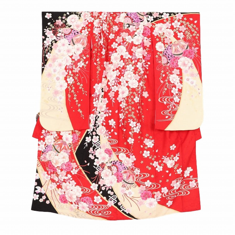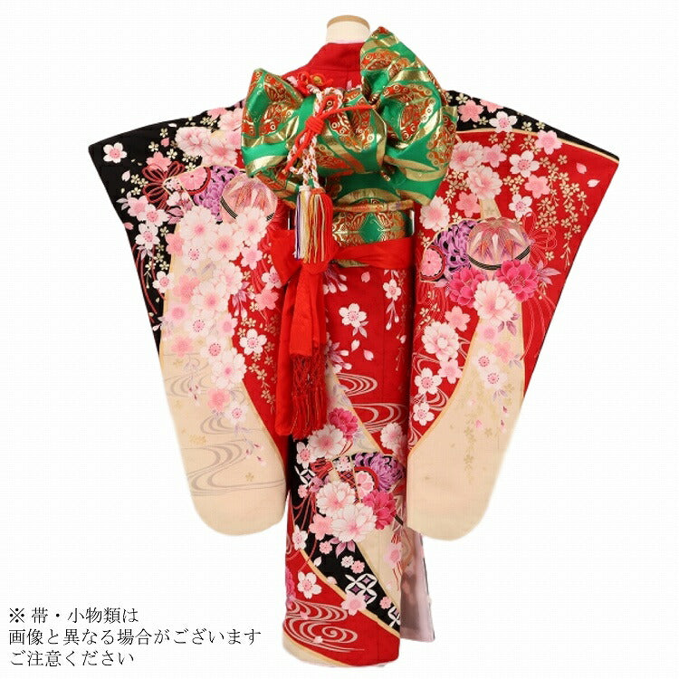 七五三 着物 レンタル 7歳 女の子 【赤黒手鞠】 7歳 七五三 着物 レトロ 【レンタル】 アンティーク 七五三 着物 7歳 フルセット レンタル 七五三 7歳 帯 作り帯 袋帯 に変更可能 七五三 着物 7歳 女の子 小さめ