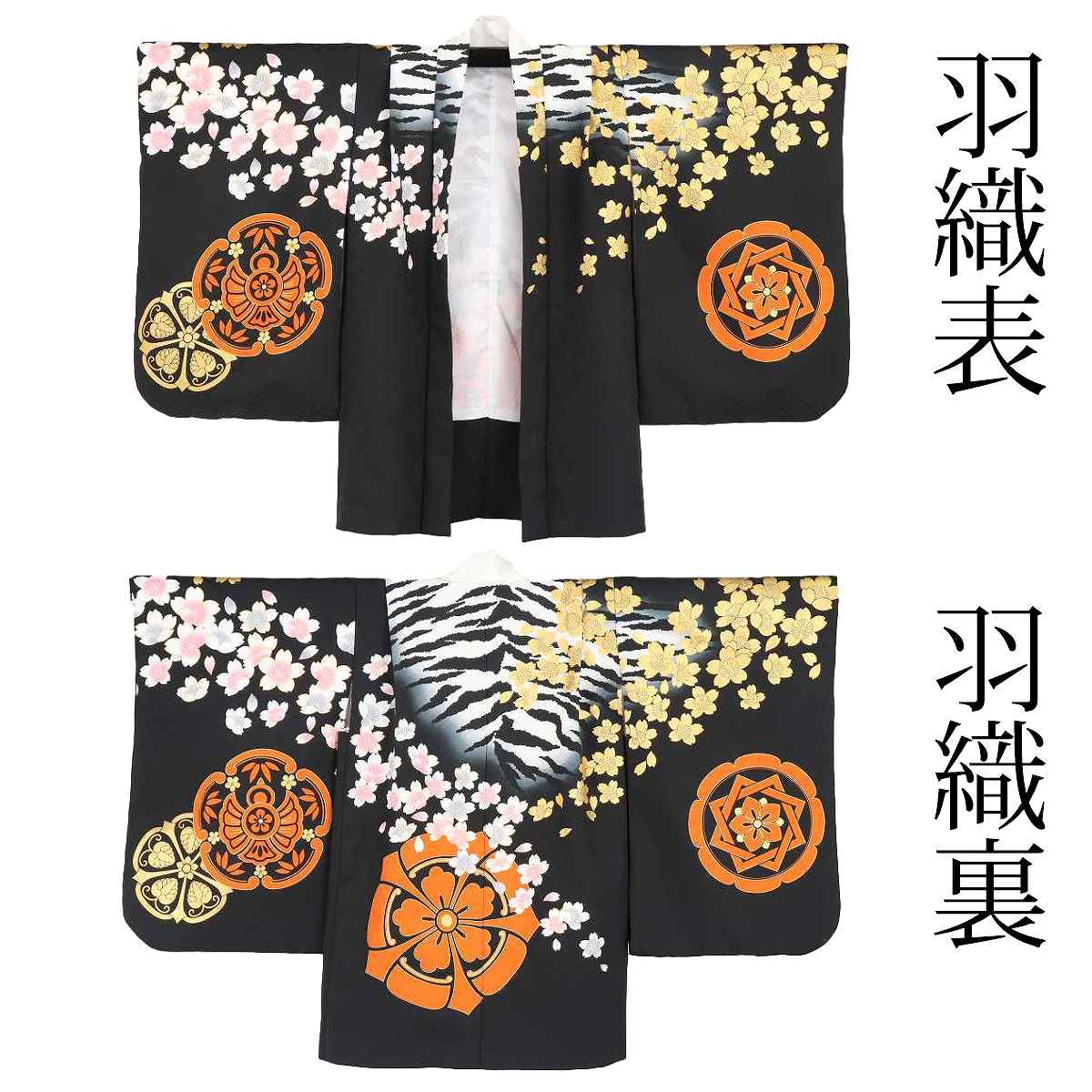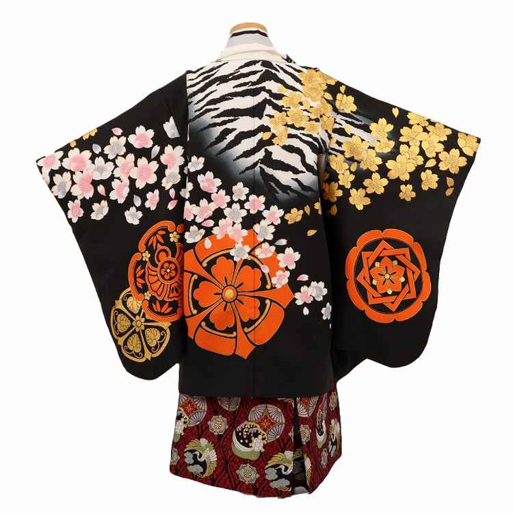 七五三 着物 男の子 5歳 七五三 レトロ 着物 男の子 5歳 【黒白虎柄桜華紋】 【レンタル】 七五三 5歳 フルセット 男の子 七五三 5歳 袴 レンタル 七五三 袴 男の子 5歳 着物 男の子 七五三 おしゃれ 七五三 男の子 着物 レトロ