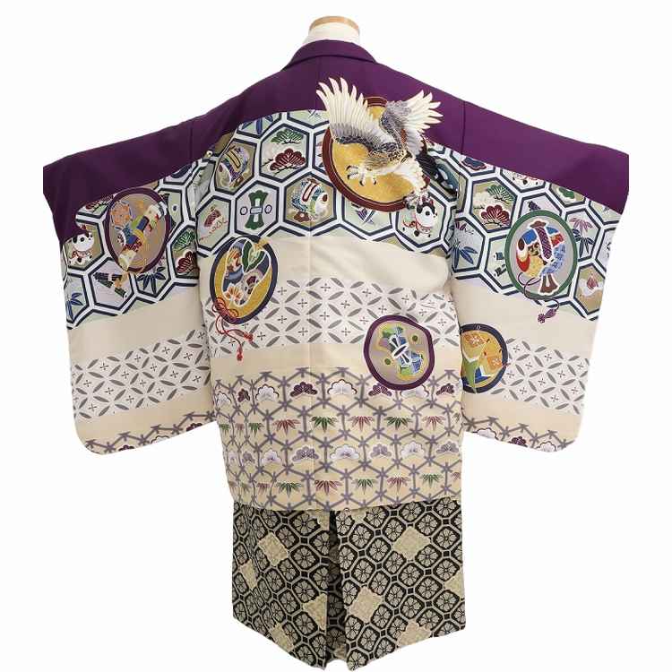 七五三 着物 男の子 5歳 七五三 レトロ 着物 男の子 5歳 【式部浪漫 紫ベージュ亀甲鷹】 【レンタル】 七五三 5歳 フルセット 男の子 七五三 5歳 袴 レンタル 七五三 袴 男の子 5歳 着物 男の子 七五三 おしゃれ 七五三 男の子 着物 レトロ
