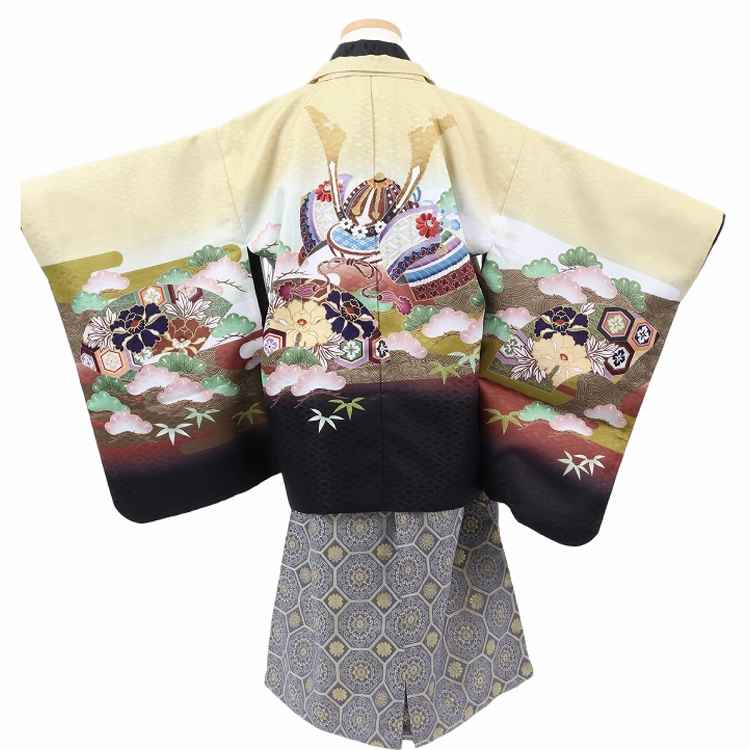 七五三 着物 3歳 レンタル 男の子 七五三 袴 男の子 三歳 【花うさぎ 黄土黒兜松に扇】 七五三 3歳 袴 レンタル 【レンタル】 七五三 着物 3歳 男の子 七五三 男の子 レンタル 3歳 七五三 着物 3歳 小さめ 肩上げ 無料