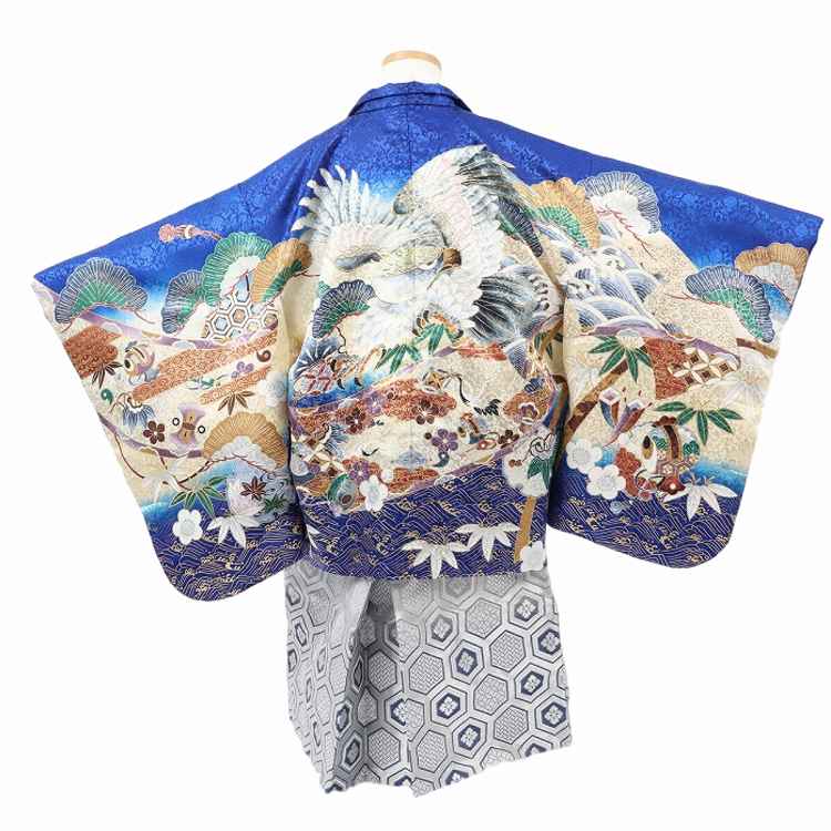 七五三 着物 男の子 5歳 七五三 レトロ 着物 男の子 5歳 【紺白鷹松宝尽くし】 【レンタル】 七五三 5歳 フルセット 男の子 七五三 5歳 袴 レンタル 七五三 袴 男の子 5歳 着物 男の子 七五三 おしゃれ 七五三 男の子 着物 レトロ