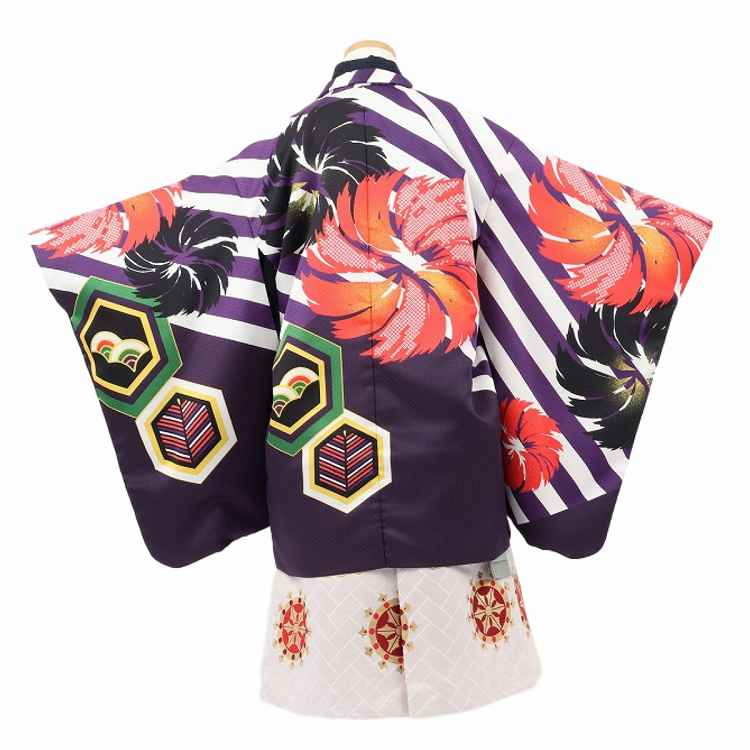 七五三 着物 男の子 5歳 七五三 レトロ 着物 男の子 5歳 【紫白斜めストライプ亀甲】 【レンタル】 七五三 5歳 フルセット 男の子 七五三 5歳 袴 レンタル 七五三 袴 男の子 5歳 着物 男の子 七五三 おしゃれ 七五三 男の子 着物 レトロ