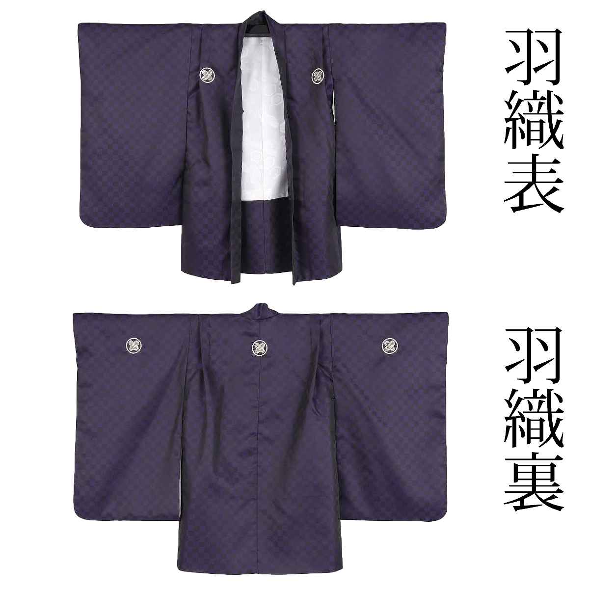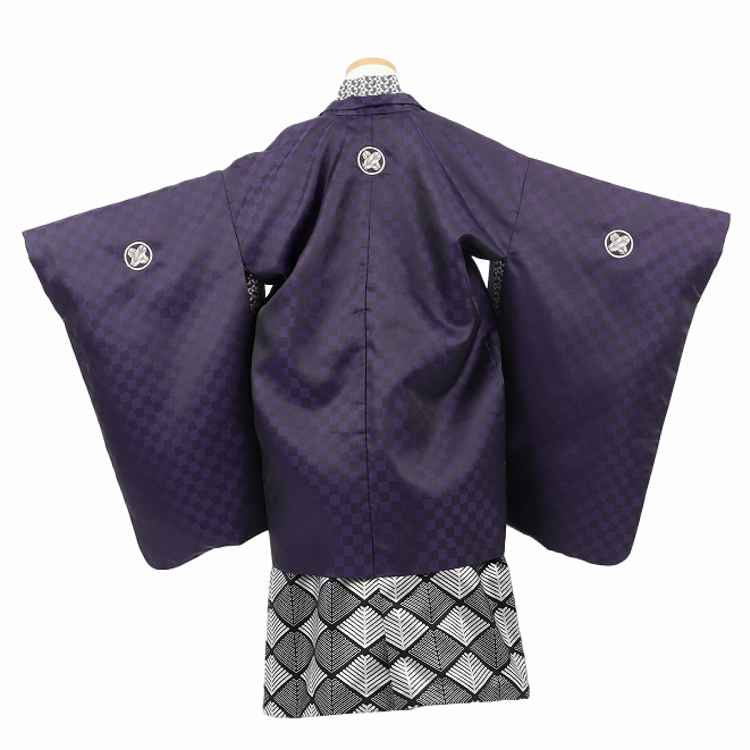 七五三 着物 男の子 5歳 七五三 レトロ 着物 男の子 5歳 【紫格子シルバー違い鷹の羽】 【レンタル】 七五三 5歳 フルセット 男の子 七五三 5歳 袴 レンタル 七五三 袴 男の子 5歳 着物 男の子 七五三 おしゃれ 七五三 男の子 着物 レトロ